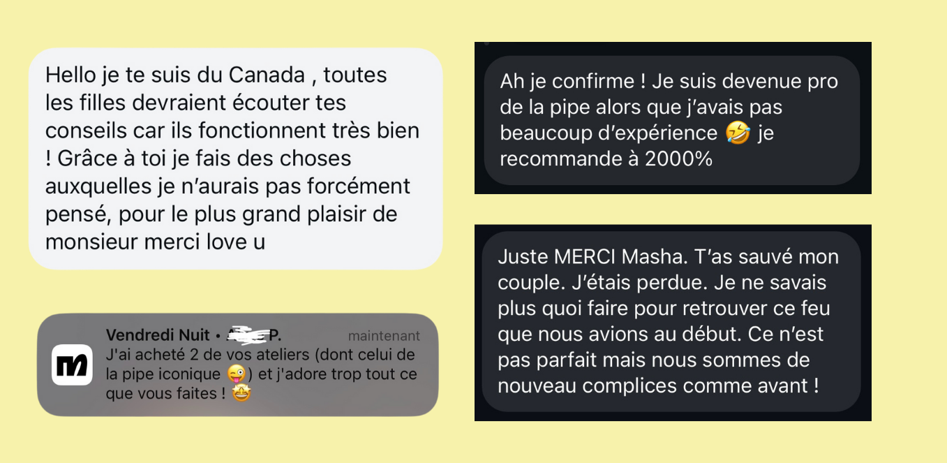 Masha tient le compte instagram @mashasexplique aux 300 000 abonné.e.s depuis cinq ans maintenant. Maman d’une petite fille de 7 ans, elle a co-lancé la campagne #monpostpartum pour libérer la parole sur l’après accouchement. Autrice sexo, elle a notamment écrit Sexplorer en couple aux éditions Mango Society.